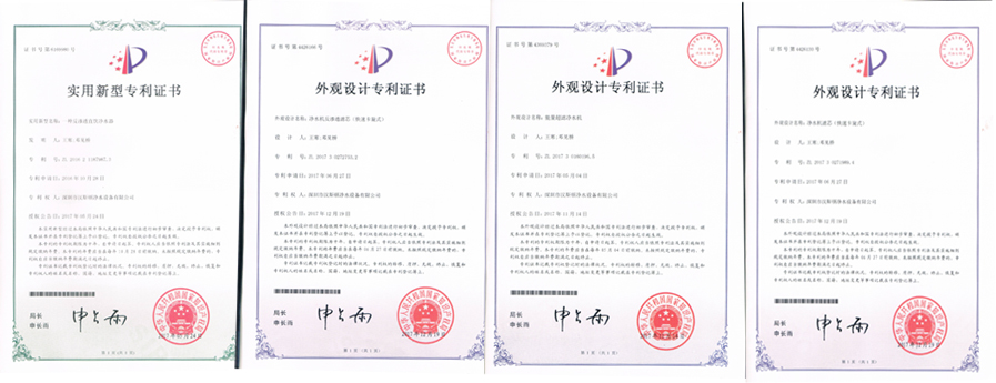 在2017年歲末之季,漢斯頓再次榮獲4項國家專利證書,分別是:《一種反滲透直飲凈水器》實用新型專利、《能量超濾凈水機》、《凈水機濾芯(快速卡旋式)》、《反滲透凈水機濾芯(快速卡旋式)》外觀設計專利。