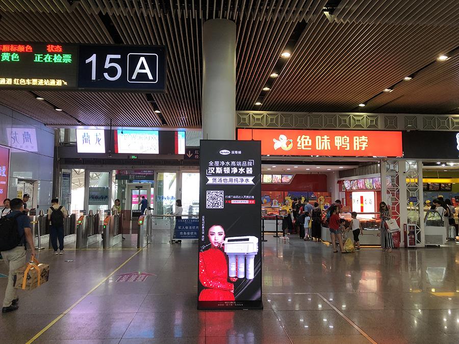 深圳北站、廣州南站是兩大城市的重要交通樞紐,具有人流量大、覆蓋范圍廣、亮相頻率高等特點,也正因為此,漢斯頓以高端廣告牌為載體,布局客流核心區域——以乘客人流走向規劃媒體點位,集中分布于候車大廳、檢票口、安檢區等醒目區域,經過雙面一體LED大屏廣告的投放方式,聚焦推行“全屋凈水高端品牌,漢斯頓凈水器”。