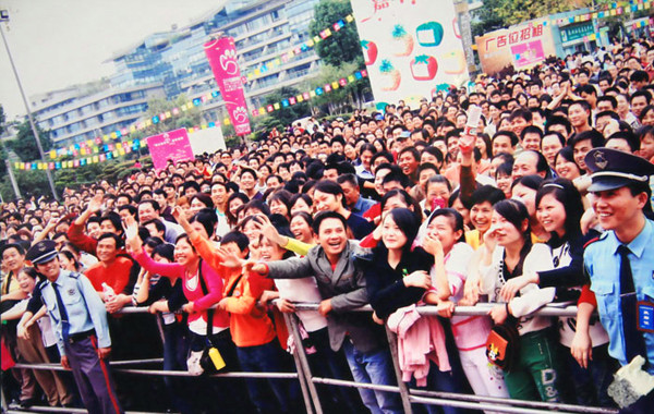廣西的人民很熱情,跟觀眾互動,大家爭先恐后的上臺表演,各種民族歌曲、名族舞蹈令人陶醉,臺下黑壓壓一片,擠滿了大大小小笑靨如花的腦袋。